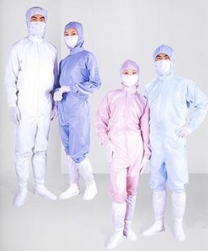 防靜電連體服采用5mm條紋或網(wǎng)格導(dǎo)電絲滌綸布料裁剪而成,具有不產(chǎn)塵、不粘塵、不主動吸引灰塵的優(yōu)點,適合場合10級-10萬級。 防靜電連體服用不同色的防靜電布制成。布料紗線含一定比例的導(dǎo)電紗,導(dǎo)電紗又是由一定比例的不銹鋼纖維或其它導(dǎo)電纖維與普通纖維混紡而成。通過導(dǎo)電纖維的電暈放電和泄漏作用消除服裝上的靜電。由于不銹鋼纖維屬金屬類纖維,所以,由它織成的防靜電布料的導(dǎo)電性能穩(wěn)定,不隨服裝的洗滌次數(shù)而變化 可選顏色 漂白 本白 淡黃 黃 淡紅 粉紅 溇G 草綠 橙 淡藍(lán) 寶藍(lán) 黑 產(chǎn)品特點: 1,男女通用,面料采用滌綸長絲纖維與進(jìn)口導(dǎo)電絲編織而成 2,能有效清除人體產(chǎn)生的靜電,具有永久防靜電性能 3,穿著舒適,耐洗滌 4,可供選擇面料,各種顏色的5mm條狀布面料 5,適用于靜電敏感區(qū)域及一般凈化區(qū) 6,100%的滌綸長絲纖維加導(dǎo)電纖維 |
